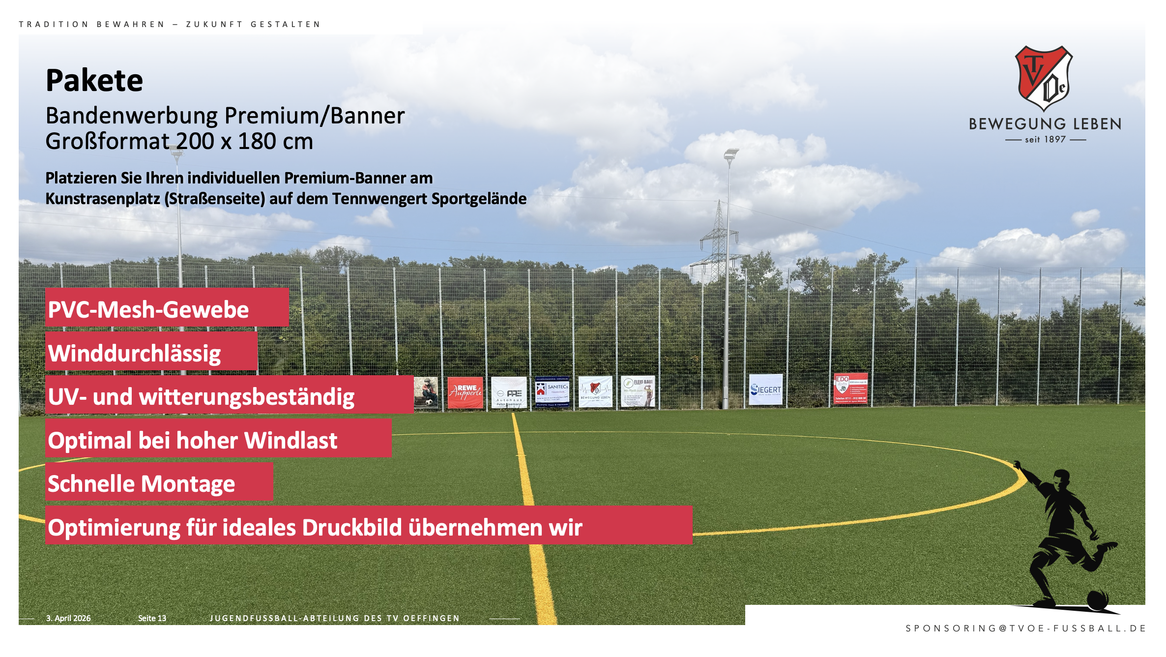 Bei einer Spende von 1.000,-- EUR erhalten Sie einen Premiumbanner auf dem Kunstrasenplatz für 2 Jahre (Normalpreis 1.500,--)